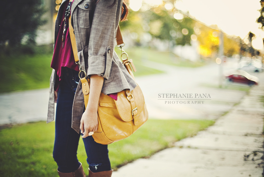 About 30 minutes into the second outfit, I decided I wanted the images to have more of a "Seventeen Magazine" or "Teen Vouge" effect to them where I was a "Back to School" Fall spread. Granted, I am NO where near ever being in a magazine as that, it was fun to be inspired. I passed over my Kelly Moore camera bag which literally was the cherry on top for this outfit. We took a stroll through this historic area, the light was perfect, and everything just fell into place.